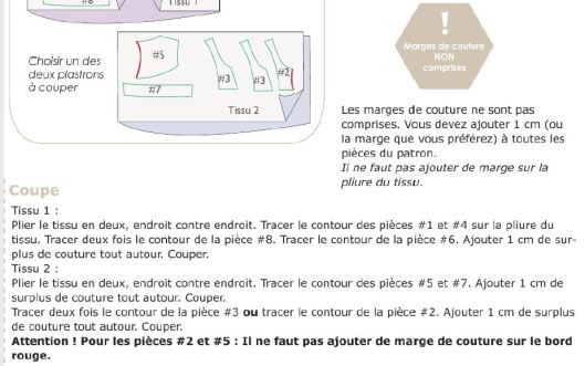 Par contre, petit bémol (avis tout à fait personnel), il n’y a pas de système de calques de tailles (il faut donc imprimer toutes les tailles) et les valeurs de couture ne sont pas incluses. Le livret technique nous indique d’ajouter 1 cm pour les coutures d’assemblage, ce que j’ai fait. En revanche, pour la valeur d’ourlet du bas du corsage, j’ai ajouté 2 cm au lieu des 1 cm conseillés.