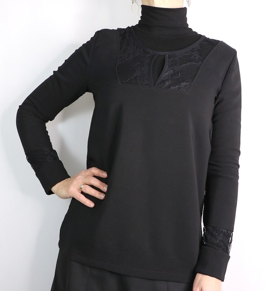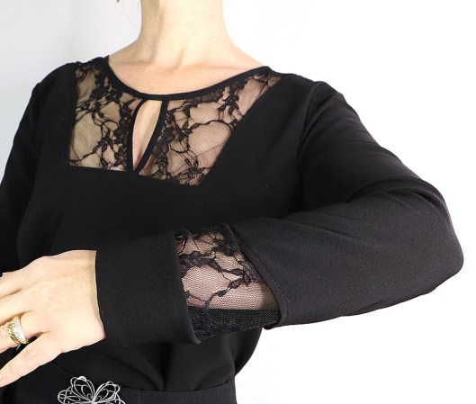 Les manches longues sont prévues avec des inserts en dentelle, c’est un détail qui me plait bien :