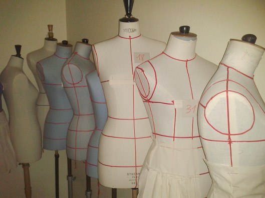 J’ai littéralement adoré les cours de moulage que j’ai suivis en cours du soir à la Mairie de Paris (ça date, c’était il y a 9/10 ans !!!) au Lycée professionnel Turquetil (11e). Une prof absolument exceptionnelle qui nous appris la technique du moulage avec beaucoup de générosité, de savoir-faire, de pédagogie et surtout de passion. Il est rare de rencontrer de telles personnes ! Je suis donc ultra reconnaissante d’avoir pu suivre cet enseignement. Pendant cette année d’apprentissage qui restera à jamais gravée dans ma mémoire, j’ai notamment appris à observer une toile et donc à exercer mon oeil. Réaliser un moulage c’est une chose mais savoir si celui-ci est correct c’est autre chose. Etre capable d’apprécier le volume, les belles lignes, un joli tombé, une toile bien équilibrée et ajustée… et bien ce n’est pas si facile que ça. Pour moi, c’est encore aujourd’hui un aspect que je dois travailler afin que j’aiguise mon œil. Pour ce faire, il faut prendre du recul, faire des avant-après, des essais / erreurs : comprendre ce qui va et ce ne va pas et trouver les corrections appropriées. C’est quelque chose qui demande de l’expérience, de la patience et un sens de l’observation aigu. Après, c’est comme tout, plus on pratique et plus vite on pourra alors identifier et résoudre les problèmes de coupe, les imperfections de la toile, les tensions du tissu… Il est également important d’intégrer les notions de style, de volume, d’aisance et de confort. Bref… C’est tout un univers et je trouve ça passionnant !