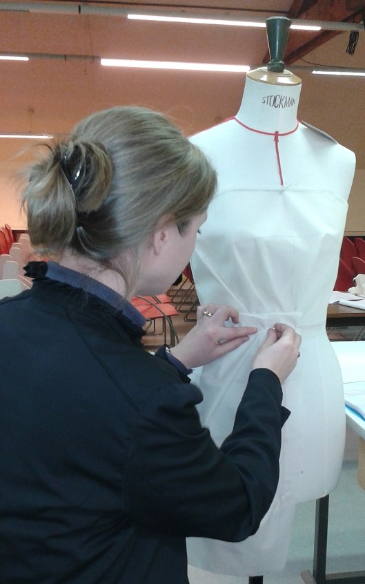 C’est un exercice qui prend du temps et qui n’a pas été des plus faciles à exécuter du fait de mon mannequin. Je pense notamment à l’emmanchure qui est ici en volume (alors que sur un mannequin standard c’est plat). C’est donc loin d’être parfait mais j’ai fait en tout cas au mieux…