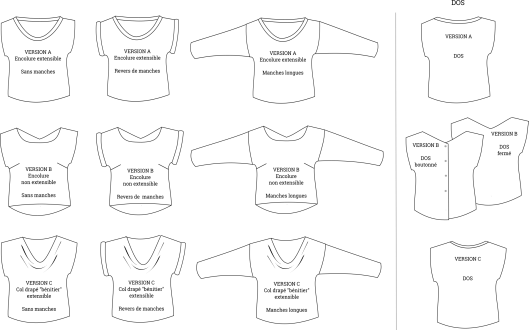 D’ailleurs avec cette base, j’ai réussi à coudre trois autres variations « maison » :