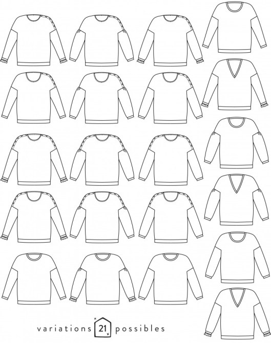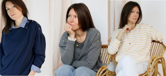 Comme vous l’avez peut-être vu, Atelier Scammit a récemment sorti le patron du sweat Horizon : « Modèle ample à l’emmanchure basse pour un style et un confort sans pareil. Trois types de manches : droite ajustée, ample avec plis plats ou classique, le tout avec option dentelle au poignet. Patte(s) de boutonnage sur l’épaule, à combiner avec trois types d’encolures: ronde ras-du-cou, ronde dégagée ou en V, et deux finitions, biais ou bord-côte. »