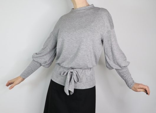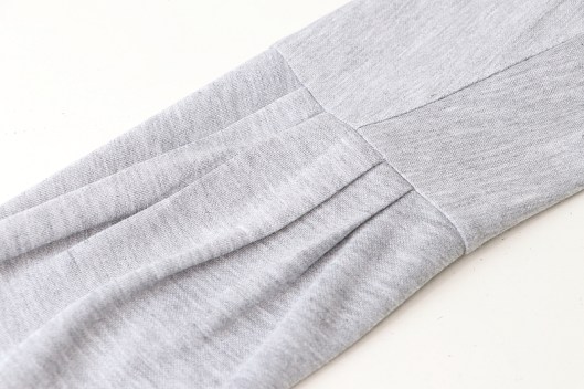Côté tissu, j’ai opté pour ce que j’avais dans mon stock, à savoir ce jersey de viscose double face chiné gris acheté 5,90€ chez Bennytex qui est de super bonne qualité.