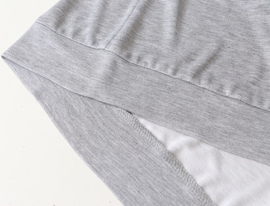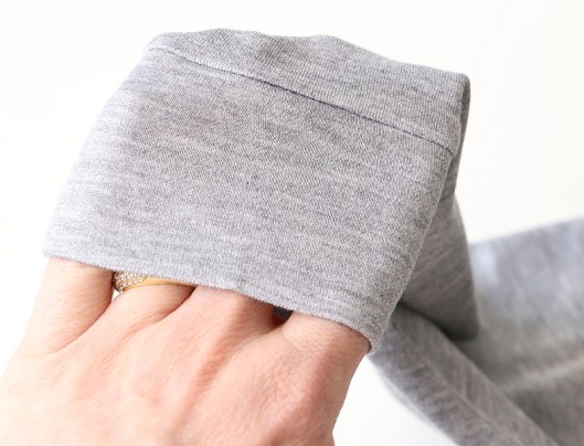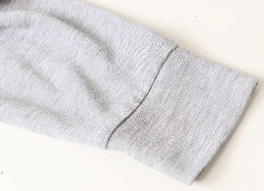 Pour le bas de mon t-shirt, j’ai ajouté une bande de taille de la même largeur que les poignets, à savoir 5 cm :