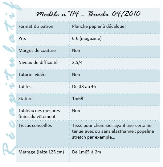 Ma chemise n°114 [Burda 04/2010] 24 mardi Mai 2022 Taille d'origine : 529 × 541 ≈ Poster un commentaire