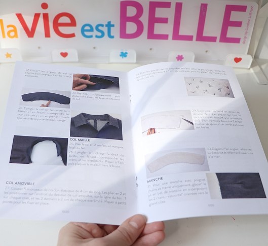 Comme d’habitude chez Atelier Scammit, les marges de coutures sont incluses (ici elles sont de 1 cm). Le livret d’instructions est en couleurs et en complément de celui-ci, une vidéo du montage est proposée en consultation libre sur YouTube, ce qui, pour moi, est une sacrée valeur ajoutée.