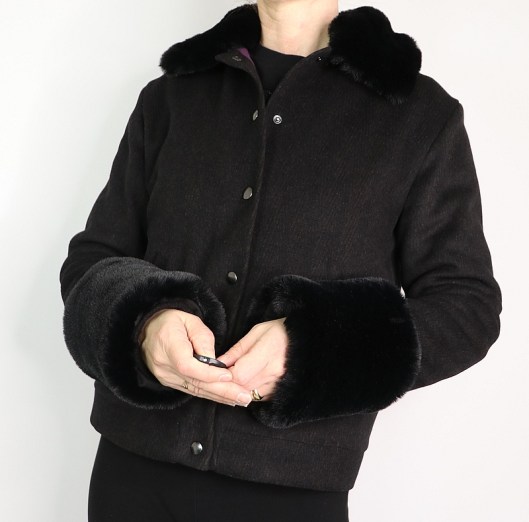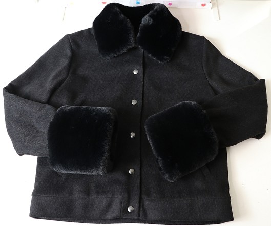 Bonjour Sandrine, oh là là ! quel beau modèle et quel beau travail de couture ! J’aime énormément le look aussi bien avec le petit col plat, qu’avec le col en fourrure. Tes poignets en fourrure sont justes un peu trop hauts, mais sinon c’est joli je trouve. Bravo pour cette super réalisation !