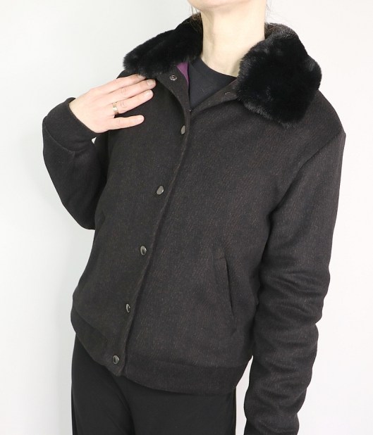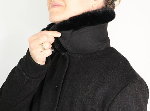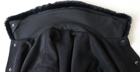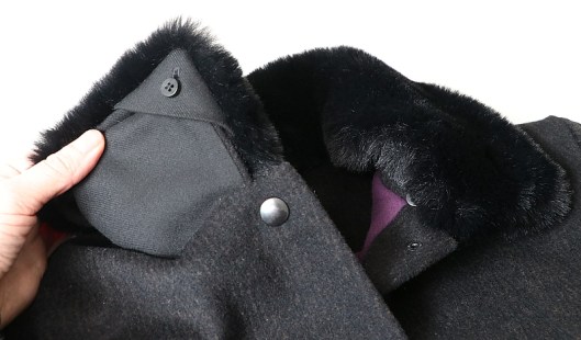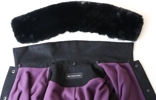 Dans un second temps, j’ai cousu le col amovible proposé par le patron. C’est d’ailleurs l’une des raisons pour lesquelles j’ai acheté ce patron : j’aime en effet bien découvrir de nouvelles techniques ! Bon, au final, je suis contente d’avoir appris comment coudre un col amovible mais je ne suis pas plus emballée que ça sur le rendu visuel… Il est donc fort probable que je porte davantage cette veste sans ce col en fourrure que je trouve bien trop imposant même s’il est ultra douillet…