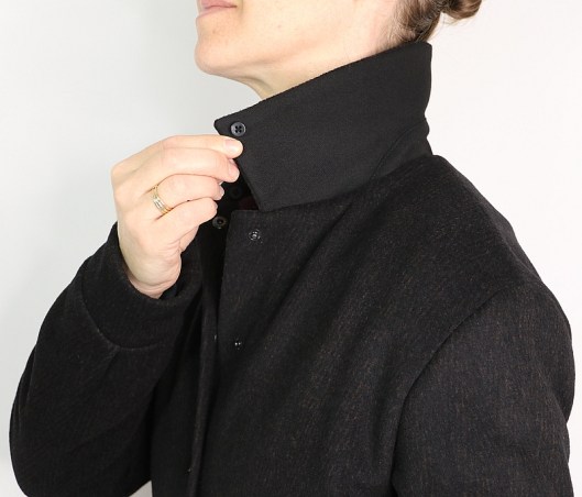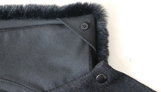 Ce col amovible vient se positionner sur le col existant au moyen de boutons et de petites brides élastiques. C’est assez astucieux je trouve.