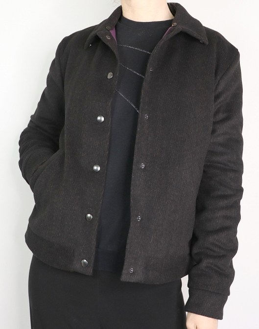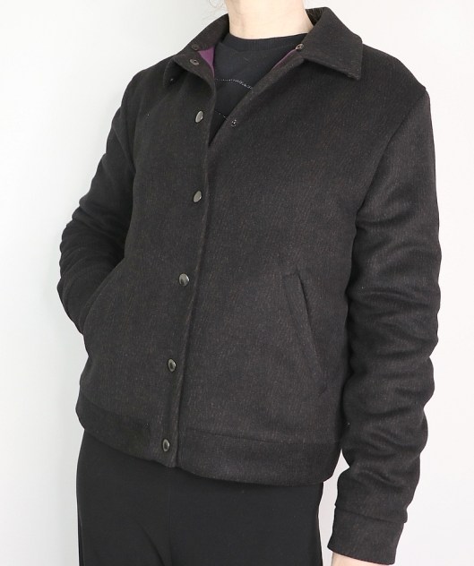 Ce n’est pas du tout de saison mais je publie tout de même aujourd’hui ce joli petit blouson en lainage que j’ai cousu en avril dernier…