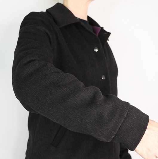 On remarque un petit pli d’aisance au bas de la manche. Idem côté doublure.
