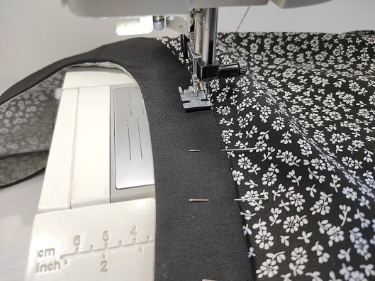 Ensuite, j’ai ajouté un volant froncé noir au bas de la robe : c’est un simple rectangle de 20 cm (valeurs d’ourlet et de coutures incluses) sur une laize de 140 cm.
