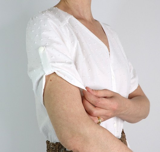 D’une manière générale, j’aime bien ajouté ce genre de petites pattes boutonnées car ça apporte, je trouve, un détail en plus. Ça permet aussi de retrousser un peu le bas de manche, ce qui modernise le tout.