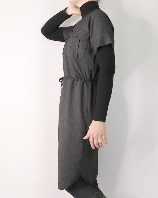 J’aime beaucoup cette robe portée avec un sous pull pour en faire une tenue d’hiver. Elle vous va très bien. Ça m’a donné des idées. Mais peut-être pas avec ce patron et leur gamme de montage. Merci pour les retours sur cette cousette.