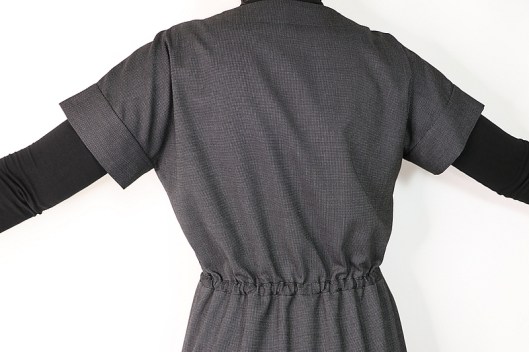 La robe est cintrée à la taille grâce à des liens qu’on vient nouer au devant. C’est là encore un détail qui me satisfait grandement.