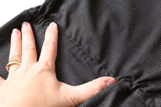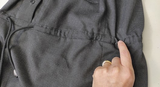 Malgré le soin apporté à cet assemblage quelque peu curieux, j’ai le problème suivant : des plis disgracieux se forment au niveau du dessous de bras : ça tire sur les coutures !