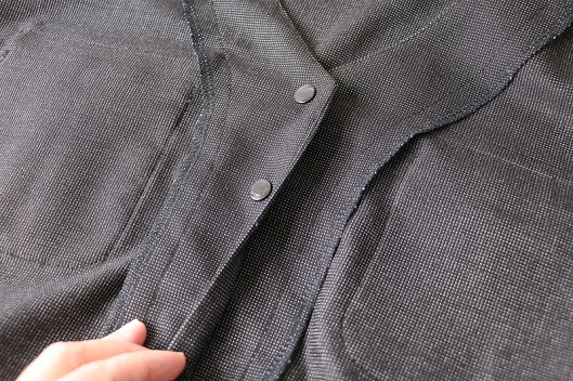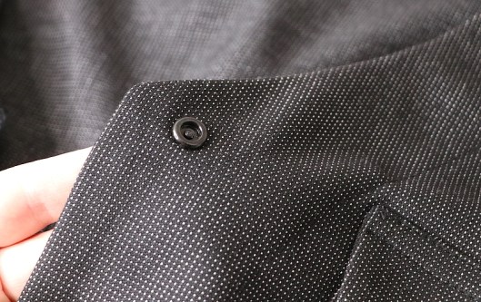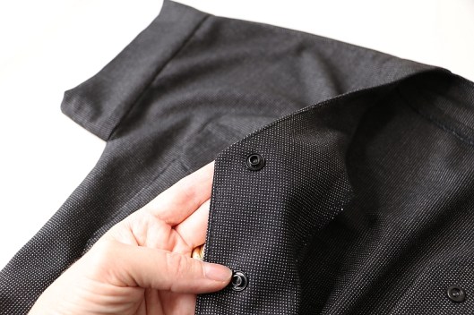 J’ai mis ici des boutons pressions noirs de la marque Prym plutôt que des boutons classiques avec boutonnières.