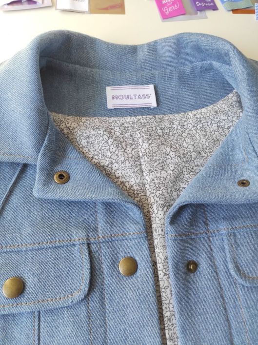 Une fois la veste finie et cousue, j’ai eu envie d’y ajouter une petite étiquette. Je commence à avoir une jolie collection grâce à Emma alias Freundii Couture qui a récemment lancé sa boutique en ligne. Alors clairement, ça se pose sur la parementure, avant d’assembler toute la veste, mais je n’y ai hélas pensé qu’à la toute fin… Sur Instagram, je vous avais fait 4 propositions et c’est « Couture égoïste » que je vous avez choisie alors je me suis exécutée ! C’est la petite touche finale qui vient parfaire cette jolie veste !