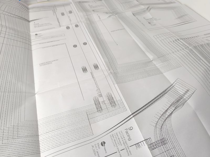 Je n’ai d’ailleurs pas trop hésité longtemps à acheter ce patron car il y avait une promotion de 20% : 12,40€ au lieu de 15,75€ le patron PDF. Sachez qu’il existe également la version papier mais je trouve le prix vraiment trop élevé (32,85€) d’autant plus qu’il n’y a que le patron papier, pas les instructions de montage… Au regard du nombre de pièces, j’ai de suite décidé d’imprimer ce patron au format A0 (4 planches en tout !) chez Impression plan (8 € les 4 planches). Je précise que pour faire baisser le prix, j’avais ajouté d’autres patrons. Ce patron de veste Kikyo m’est donc revenu au total à 20,40€.