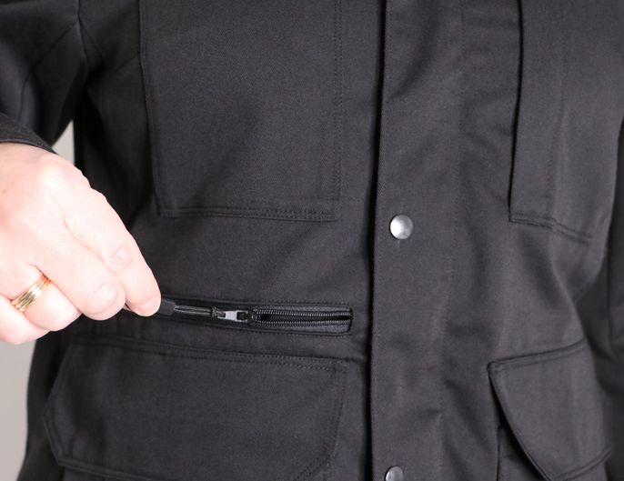 Et sur la manche gauche, on retrouve une poche zippée positionnée sur le bas :