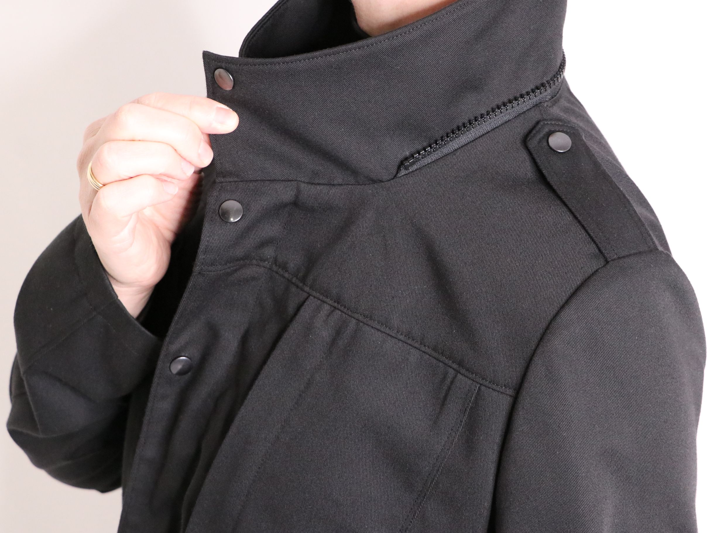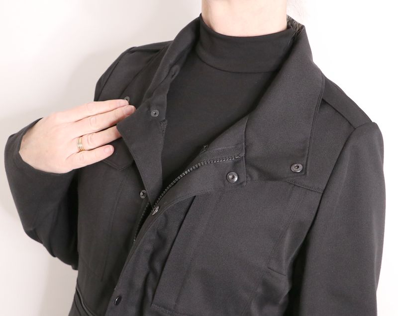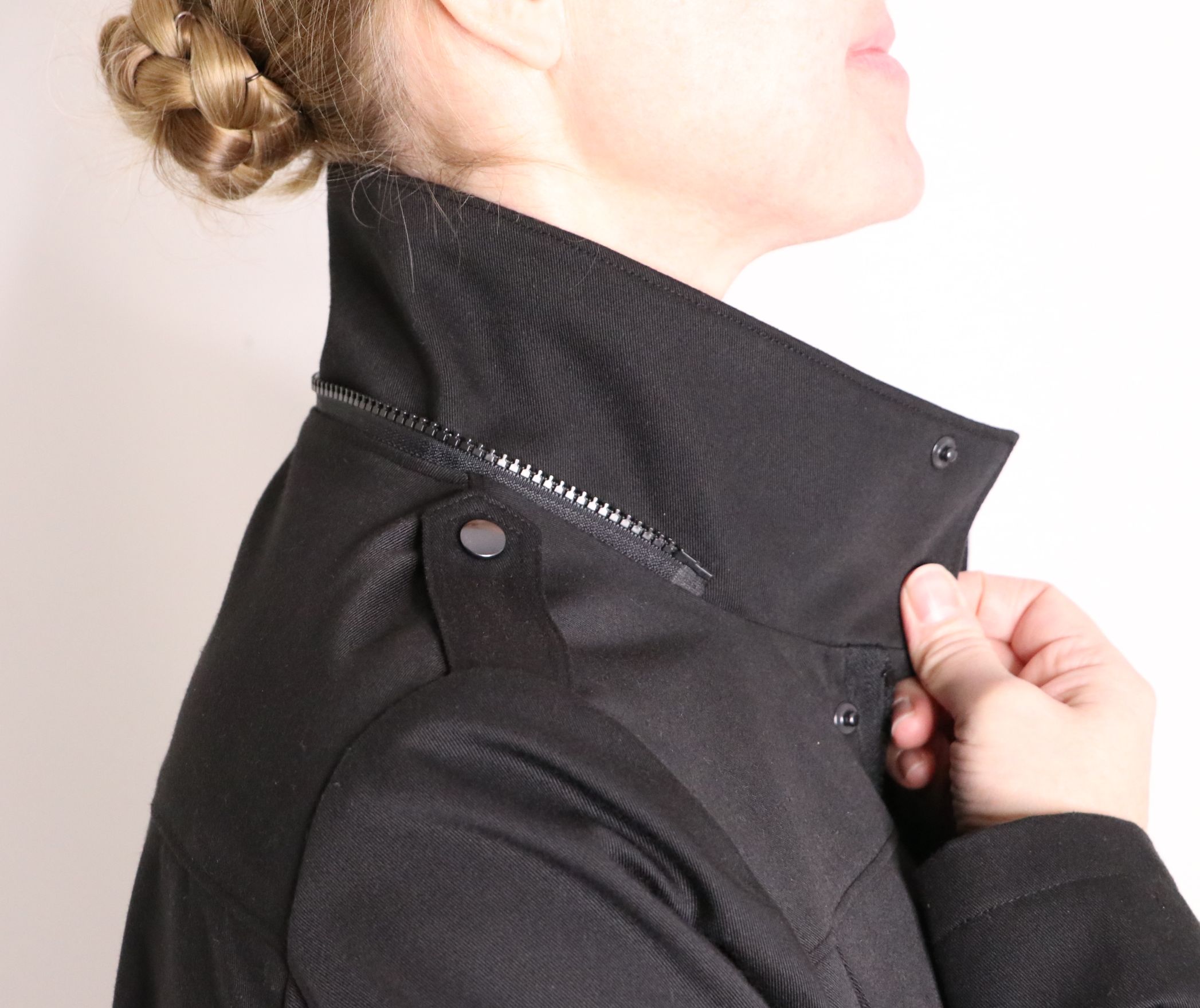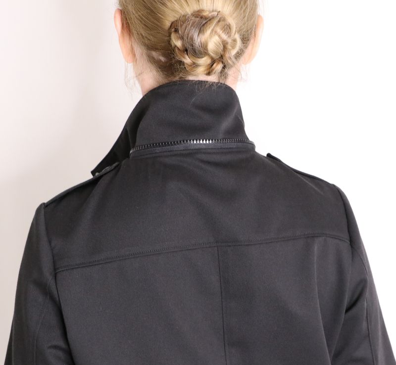 On peut si on le souhaite positionner le col montant de cette façon et le zip n’est ainsi plus du tout apparent :