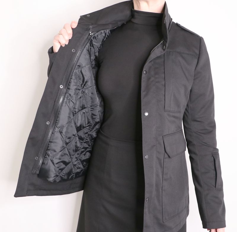 Techniquement et couturesquement parlant, je trouvais ça intéressant de savoir comment ils avaient conçu ça. Le système est en fait tout simple mais bien pensé. C’est assez ingénieux car la doublure vient se fixer à la veste grâce à des zips et des boutons cousus ici et là.