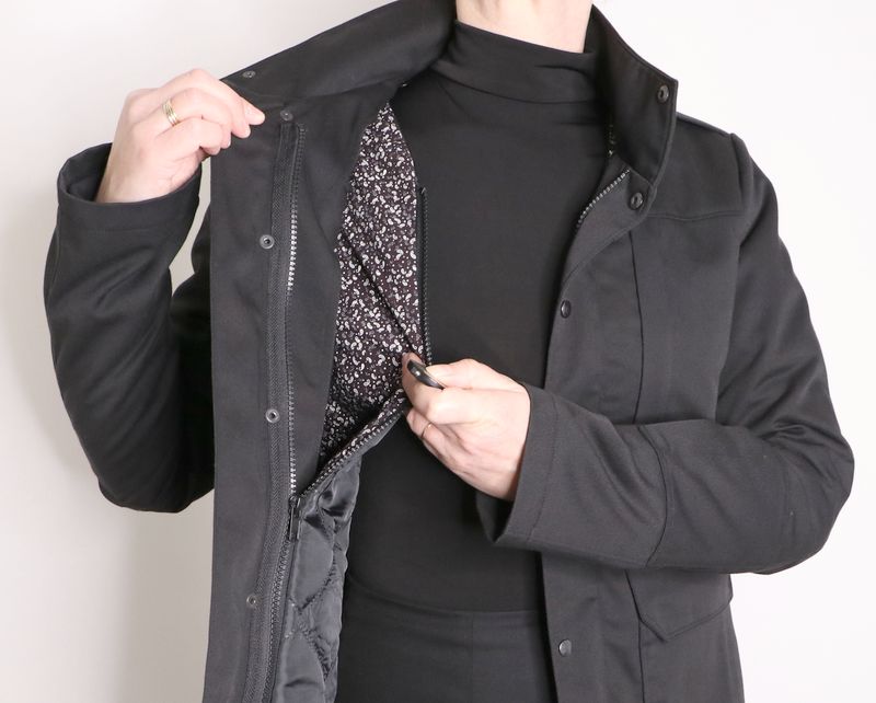Comme indiqué plus haut, la veste est prévue avec une doublure amovible et c’est vraiment le détail pour lequel j’ai acheté ce patron ! Je trouve le concept vraiment original. Je ne connais d’ailleurs pas d’autres patrons qui proposent une veste avec doublure amovible.
