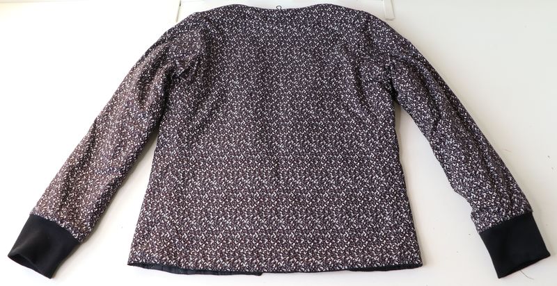 L’aisance est tout à fait correcte sauf pour les manches que j’aurais dû couper en taille 40 voire en taille 42 car le tissu que j’ai choisi pour la doublure est plus épais que préconisé. Je me sens vraiment engoncée au niveau des manches de la doublure, c’est vraiment inconfortable… Dommage que le tour de bras n’apparaissent pas dans le tableau des tailles… Je vais donc devoir découdre le matelassé des manches et le remplacer par une doublure plus fine…