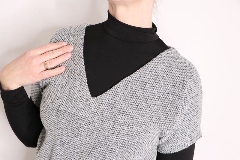 1/ j’ai modifié l’encolure pour obtenir un décolleté en V au devant.