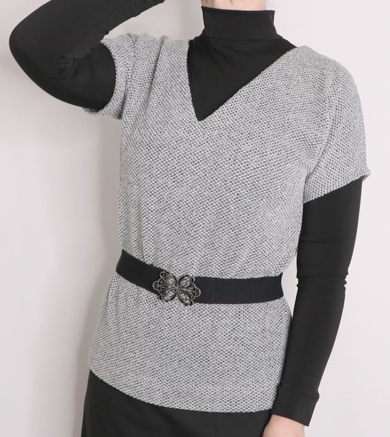 Revenons à présent à la version du jour : un pull à encolure en V, facile à coudre et facile à porter au quotidien. Je peux porter le pull ceinturé ou pas. Voici ce que ça donne porté sans ceinture :