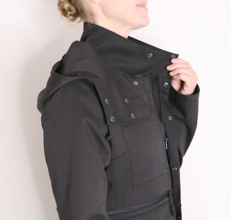 Côté finitions de l’encolure devant & dos, j’ai opté pour des parementures :