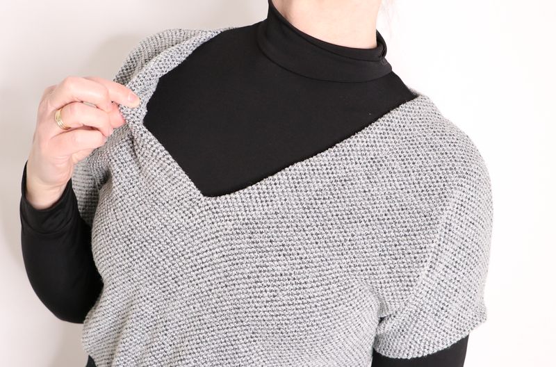 1/ j’ai modifié l’encolure pour obtenir un décolleté en V au devant.