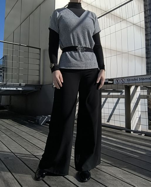 Je le porte ici avec mon sous-pull col roulé Diana et mon pantalon Burda :