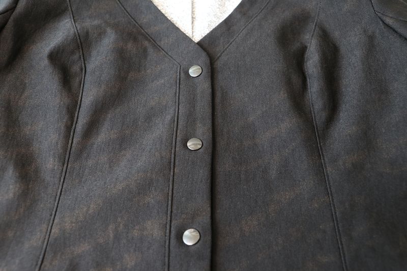 Le bas du devant de la veste est en pointe, ce qui lui confère là aussi un cachet particulier.