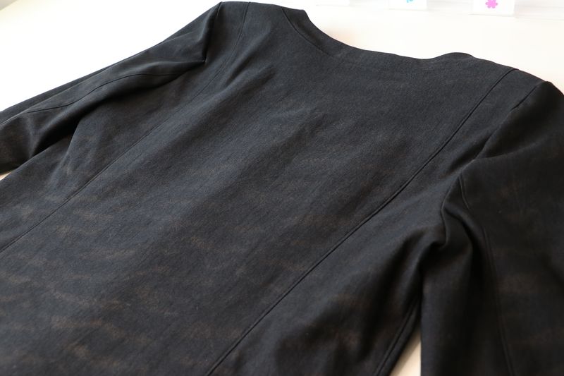 Il y a également un empiècement qui vient s’ajouter pour donner un charme supplémentaire à cette veste. C’est vraiment le détail original de ce patron. Je regrette juste de ne pas avoir utilisé un tissu contrastant comme le propose la créatrice… ça aurait ainsi davantage mis en valeur cet empiècement.