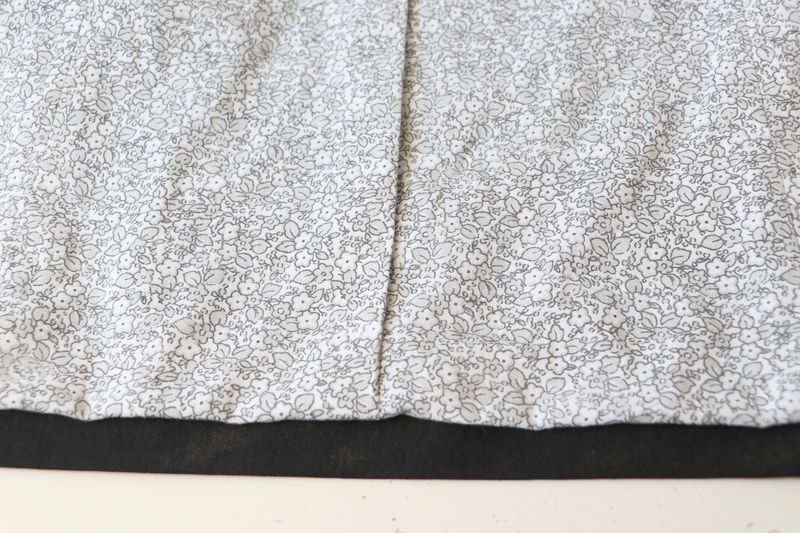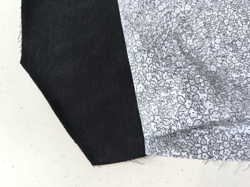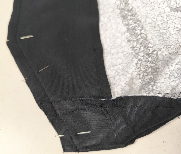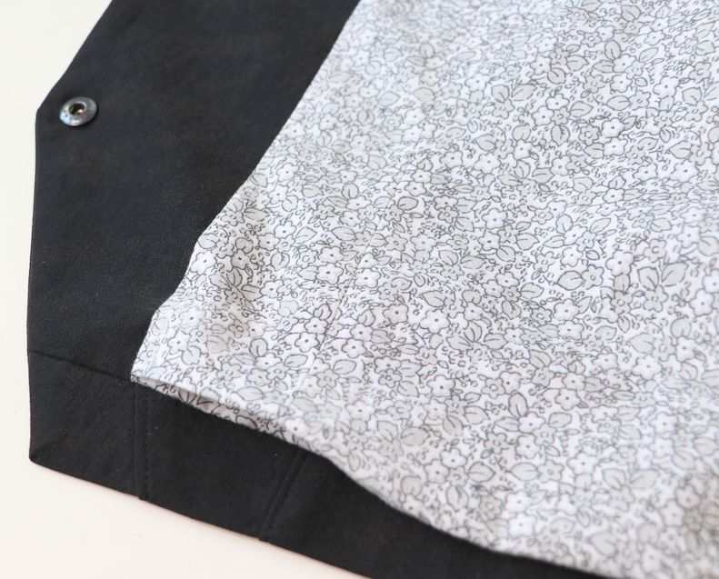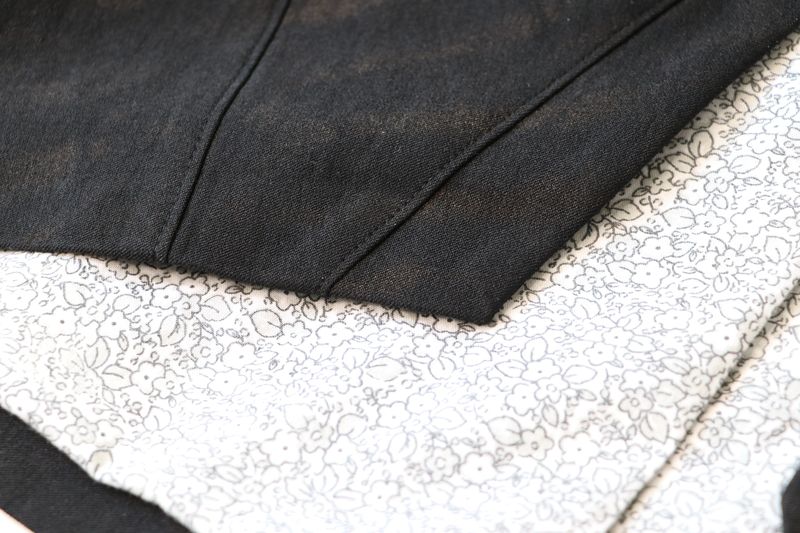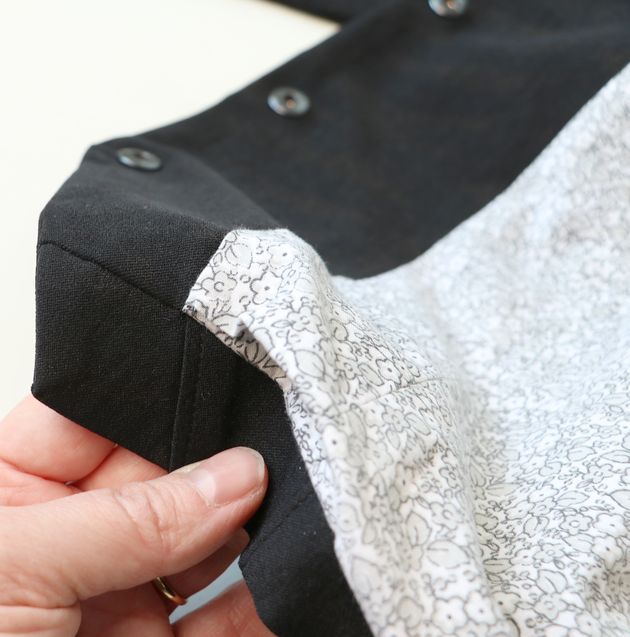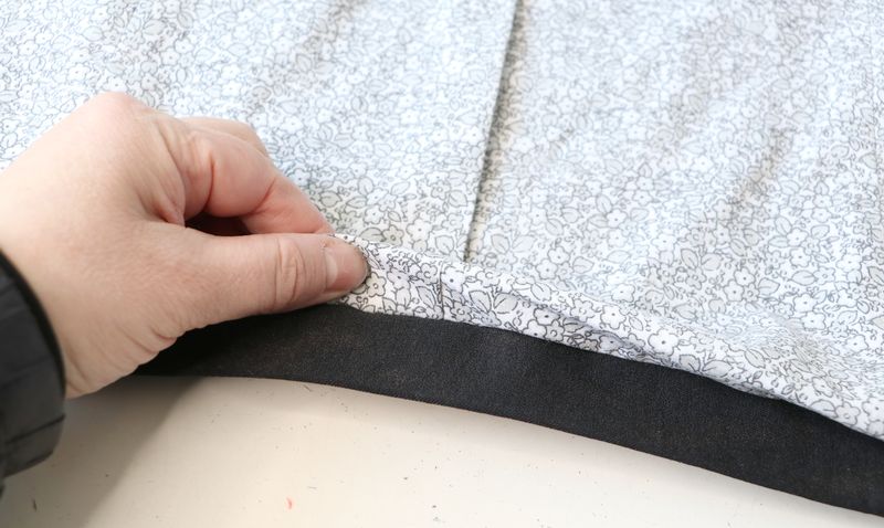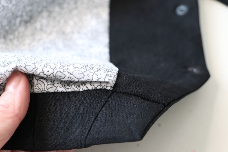 Il y a une petite subtilité au niveau du bas de la doublure. Il faut en effet former un pli avant de venir assembler la pièce doublure à la parementure (regardez la vidéo, ce sera plus explicite).