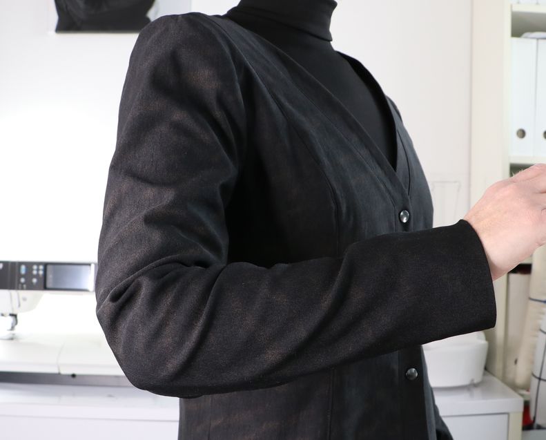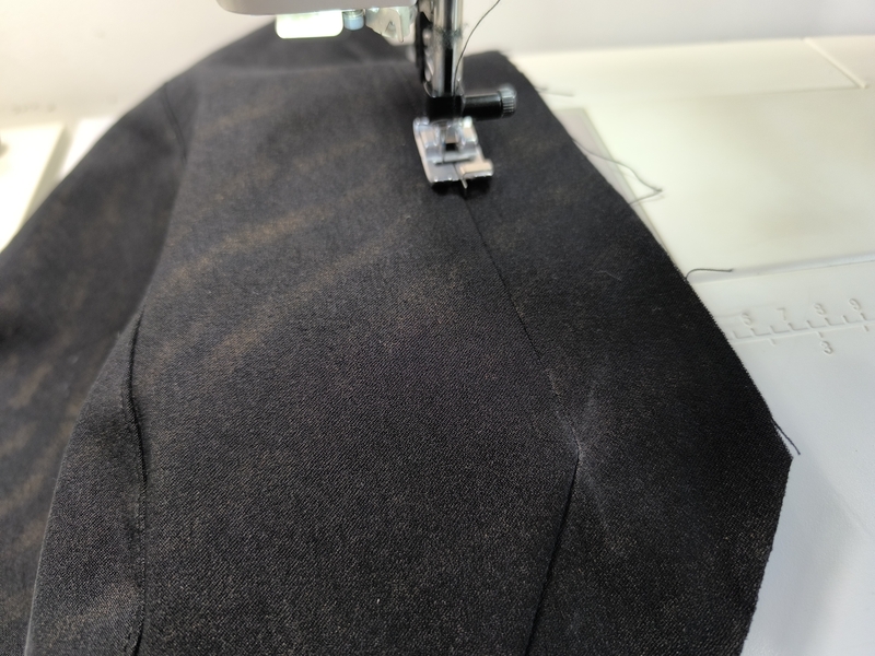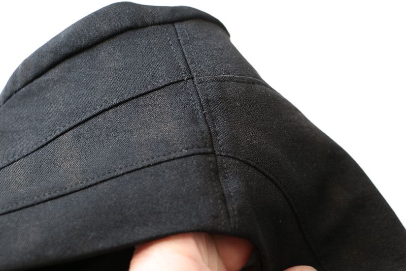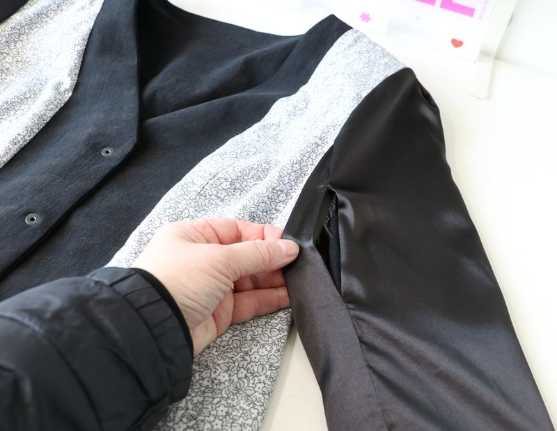 A noter que la tête de manche de la doublure est prévue avec un pli alors que dans le tissu principal, l’embu est comme à l’accoutumée résorbé.
