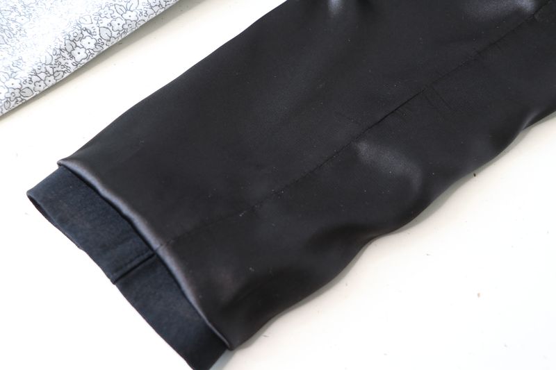 J’ai opté pour cette popeline de coton (15€/3m) pour le corps (chutes de mon stock) et d’un tissu doublure satin (15€/3m) pour les manches. Le tout provenant de l’incontournable boutique Les Coupons de Saint-Pierre !