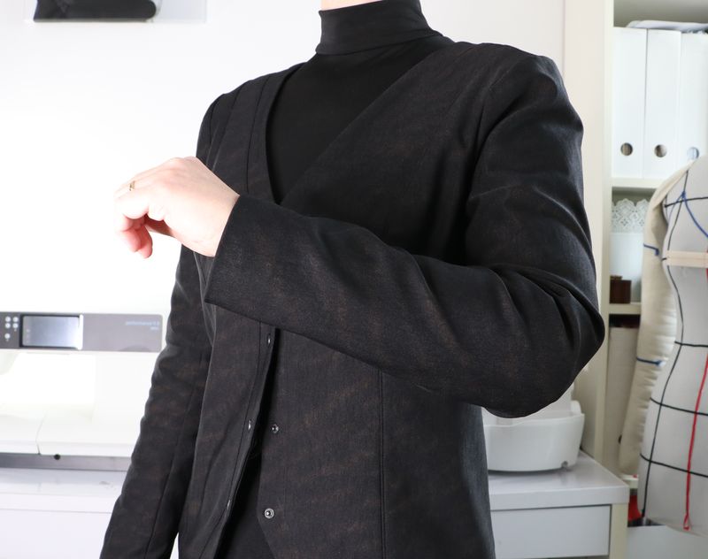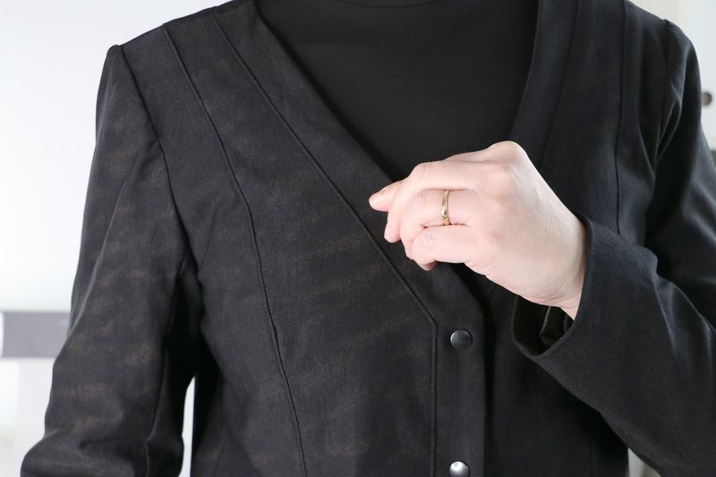 Voilà, je crois que j’ai fait le tour de ce que j’avais à vous dire. J’aime beaucoup l’élégance de cette veste et cet empiècement original… mais je dois avouer que je regrette un peu mon choix de tissu…