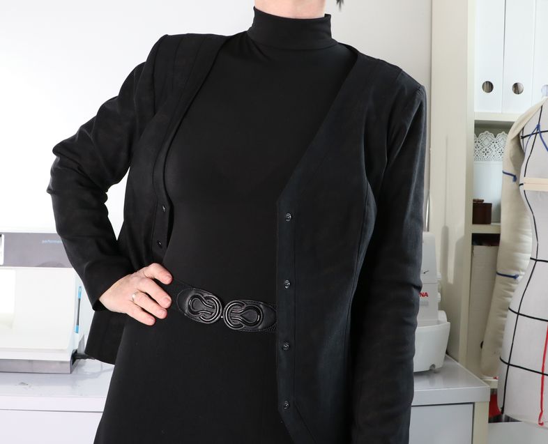 Je ne suis cependant pas vraiment convaincue par le résultat. La ligne d’épaule semble trop longue, la carrure un peu trop large… mais là encore c’est certainement dû à mon choix de tissu…