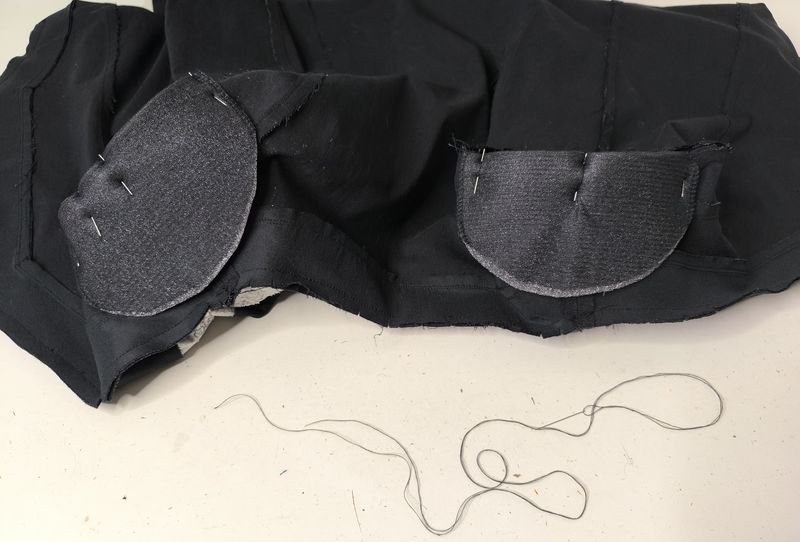 Il est par ailleurs proposé de coudre au niveau de la tête de manche des cigarettes de manche mais j’ai préféré opter pour de fines épaulettes car à l’essayage, ça me faisait des épaules tombantes.