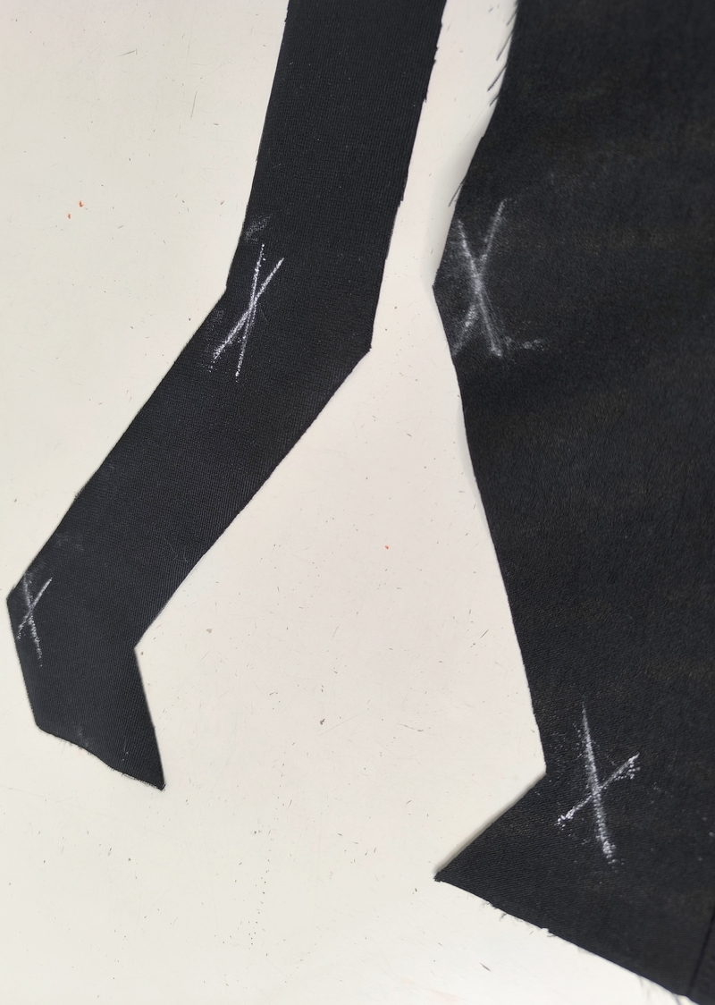 Le plus délicat dans ce modèle c’est donc l’assemblage de l’empiècement devant car il y a des angles et donc des incrustations à gérer : 3 d’un côté, 3 de l’autre soit 6 au total.
