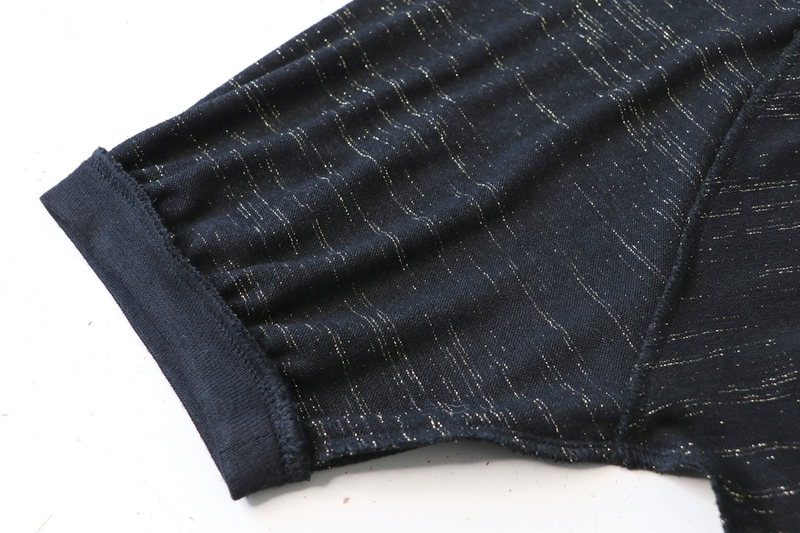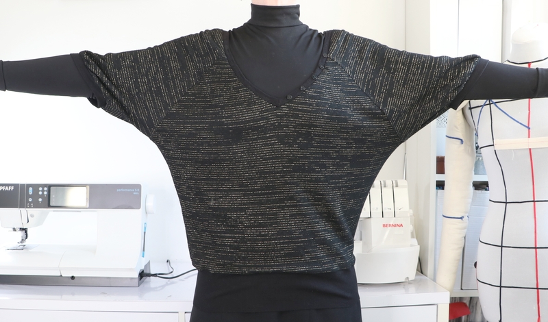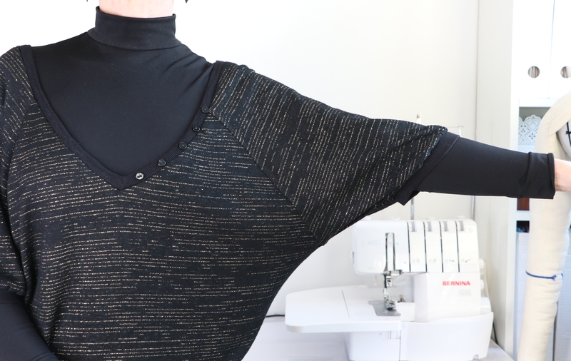 Comme indiqué au début de cet article, la coupe est ample et les manches raglan de type chauve souris :