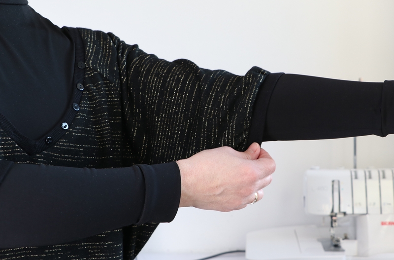 Les manches sont de longueur coude et resserrés par un fin bracelet de manche :