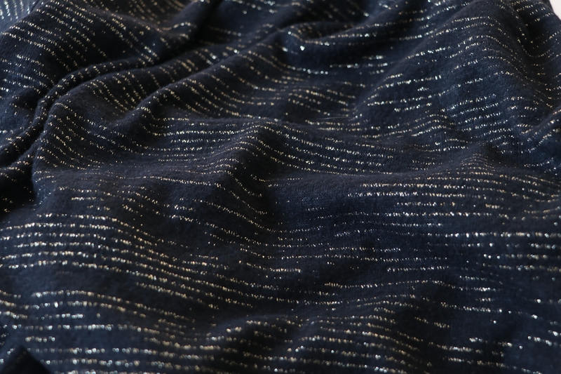 En ce qui concerne le tissu, c’est une maille de viscose que j’ai achetée sur le site Patterns for You, 25€ les deux mètres. C’est un tissu en provenance de Promod. Sur le site il est écrit que c’est du molleton gratté léger mais en fait pas du tout. C’est une maille tricot fine !