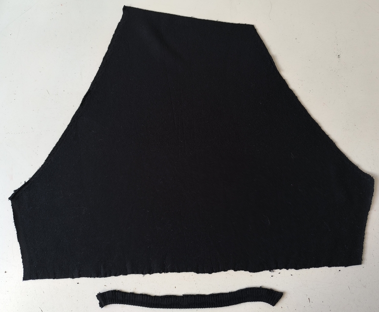 Comme vous pouvez le remarquer, j’ai récupéré la bande d’encolure d’origine pour la refixer sur mon nouveau pull.