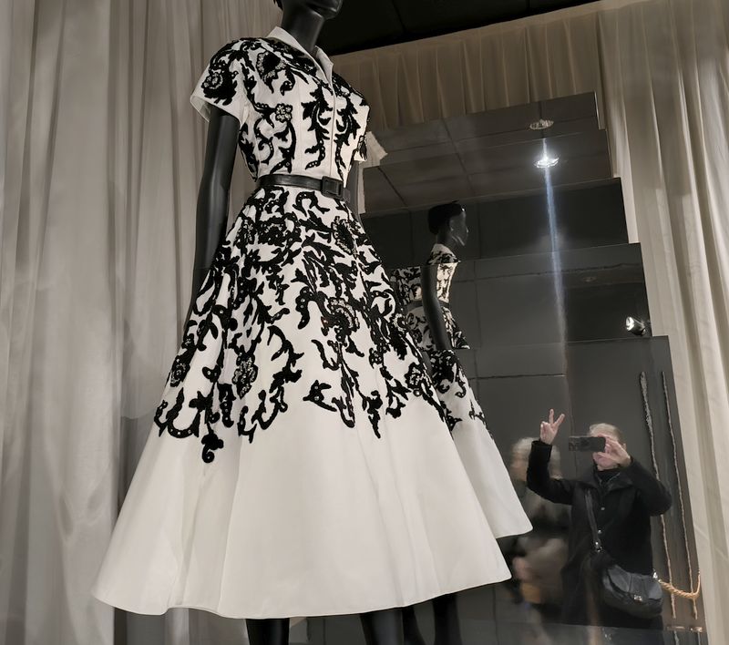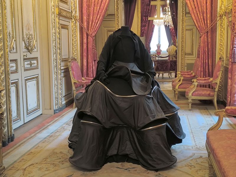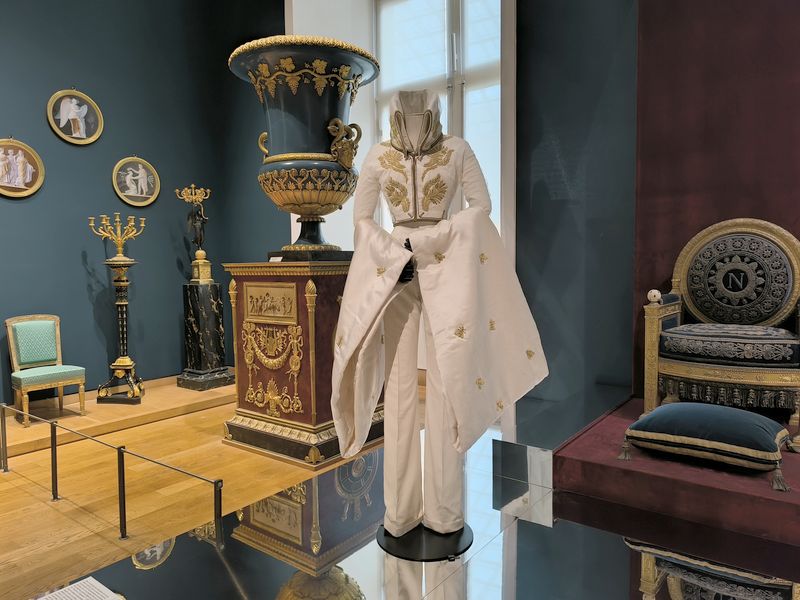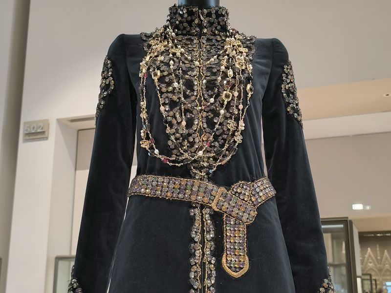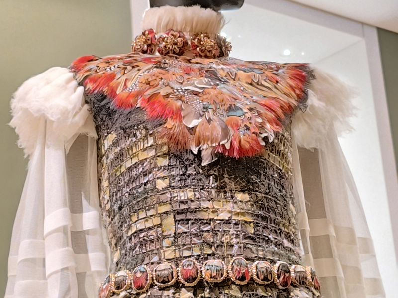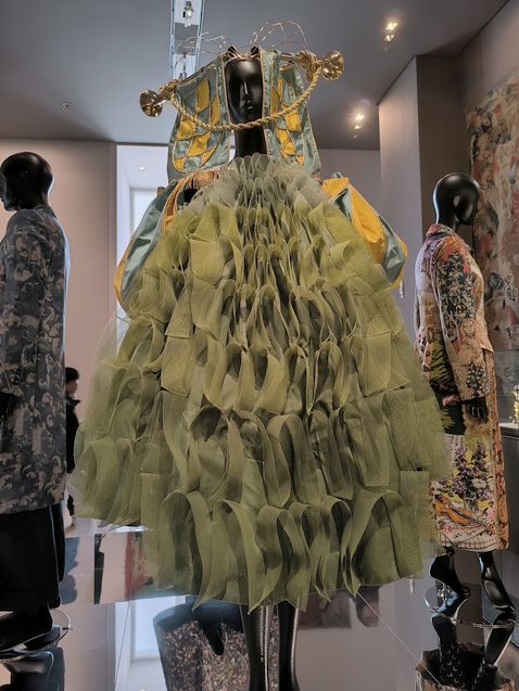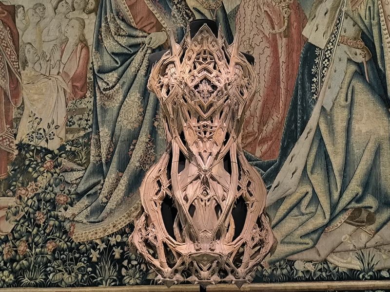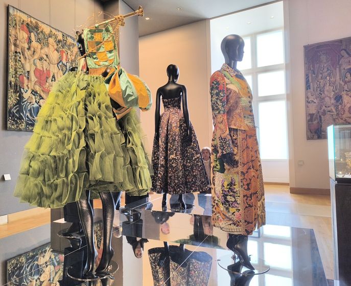 Voici la description de cette exposition : « L’exposition propose un dialogue saisissant et inédit entre les chefs-d’œuvre du département des Objets d’art du musée et des pièces marquantes de l’histoire de la mode contemporaine, entre les années 1960 et 2025, de Cristóbal Balenciaga à Iris van Herpen. Au long d’un parcours au cœur même des collections du musée, sur près de 9 000 mètres carré, c’est une centaine de silhouettes et d’accessoires qui résonnent de manière tout à tour savante, émouvante et poétique, avec l’histoire des arts décoratifs, celle des styles, des métiers d’art et de l’ornement, illustrant les liens très étroits qui unissent la mode à l’art. Autant de prêts remarquables accordés pour la première fois par quarante-cinq maisons et créateurs parmi les plus emblématiques de l’histoire de la mode. »