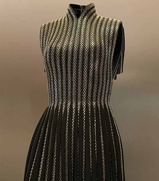 Cette robe évoque les édifices gothiques avec ce style architectural, cette structure effilée et ces formes ciselées.