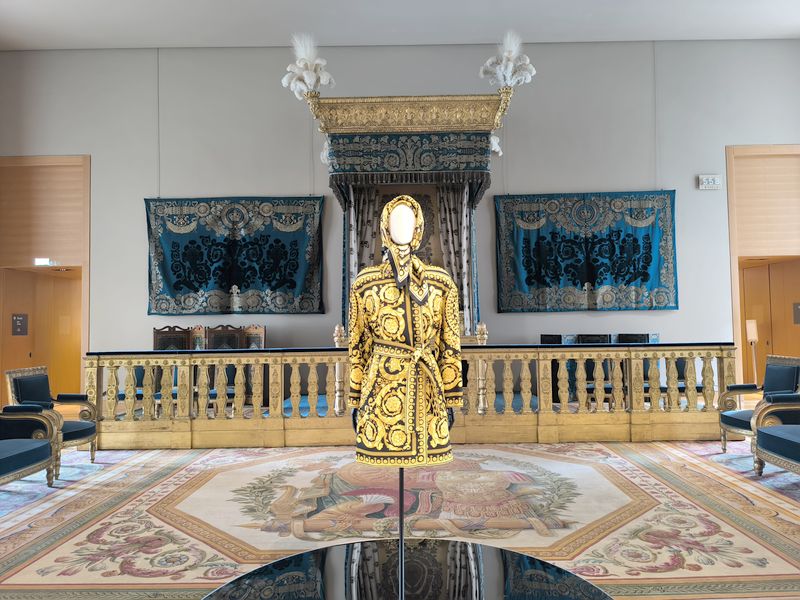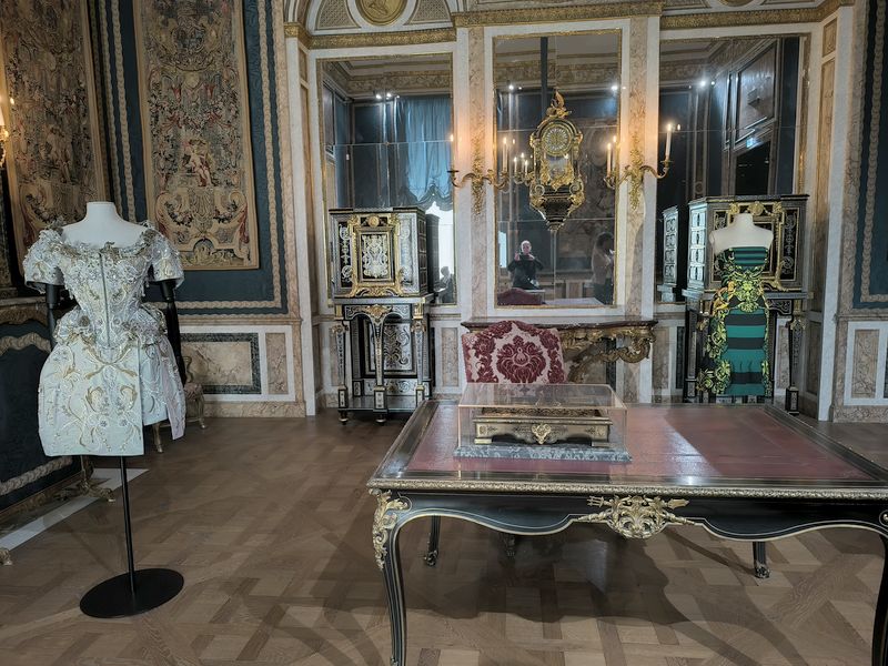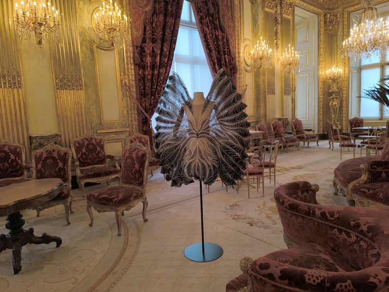 Une fois que toutes ces formalités sont faites, savourez ! Vous allez enfin pouvoir découvrir les 65 créations couture qui sont exposées tout au long du parcours. Les salles qui se succèdent sont absolument superbes en terme de décoration, d’ameublement… On en prend plein les yeux, tellement que ça en donnerait presque le tournis ! Pour résumer, ce n’est qu’exubérance et splendeur !