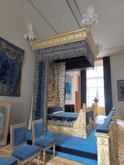 Cet ensemble est exposé devant ce lit à impériale de Charles X :